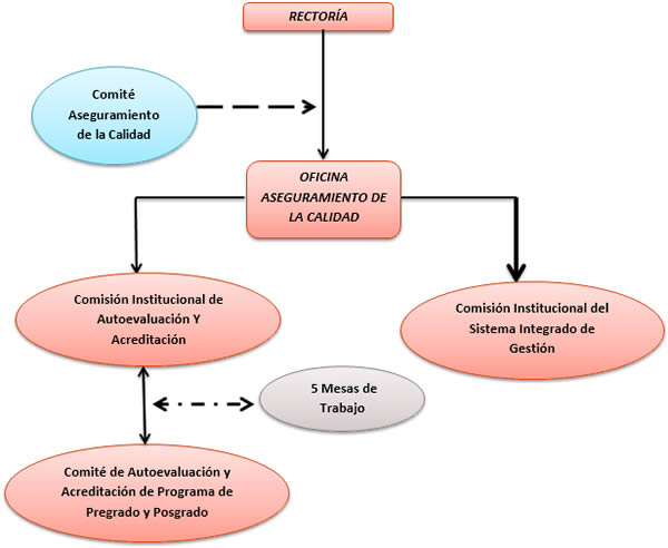 El primero, enfocado a los Sistemas de Gestión, los cuales lo integran Calidad, Ambiental y Seguridad y Salud en el Trabajo y el segundo, el Sub Sistema de Aseguramiento de la calidad de la Educación Superior, responsable de Asesorar y coordinar los procesos de Autoevaluación, la formulación y seguimiento de Planes de Mejoramiento de los programas académicos de Pregrado y Posgrado con fines de Renovación de Registro Calificado, Acreditación, Renovación de Acreditación, así como la Renovación de Acreditación Institucional.